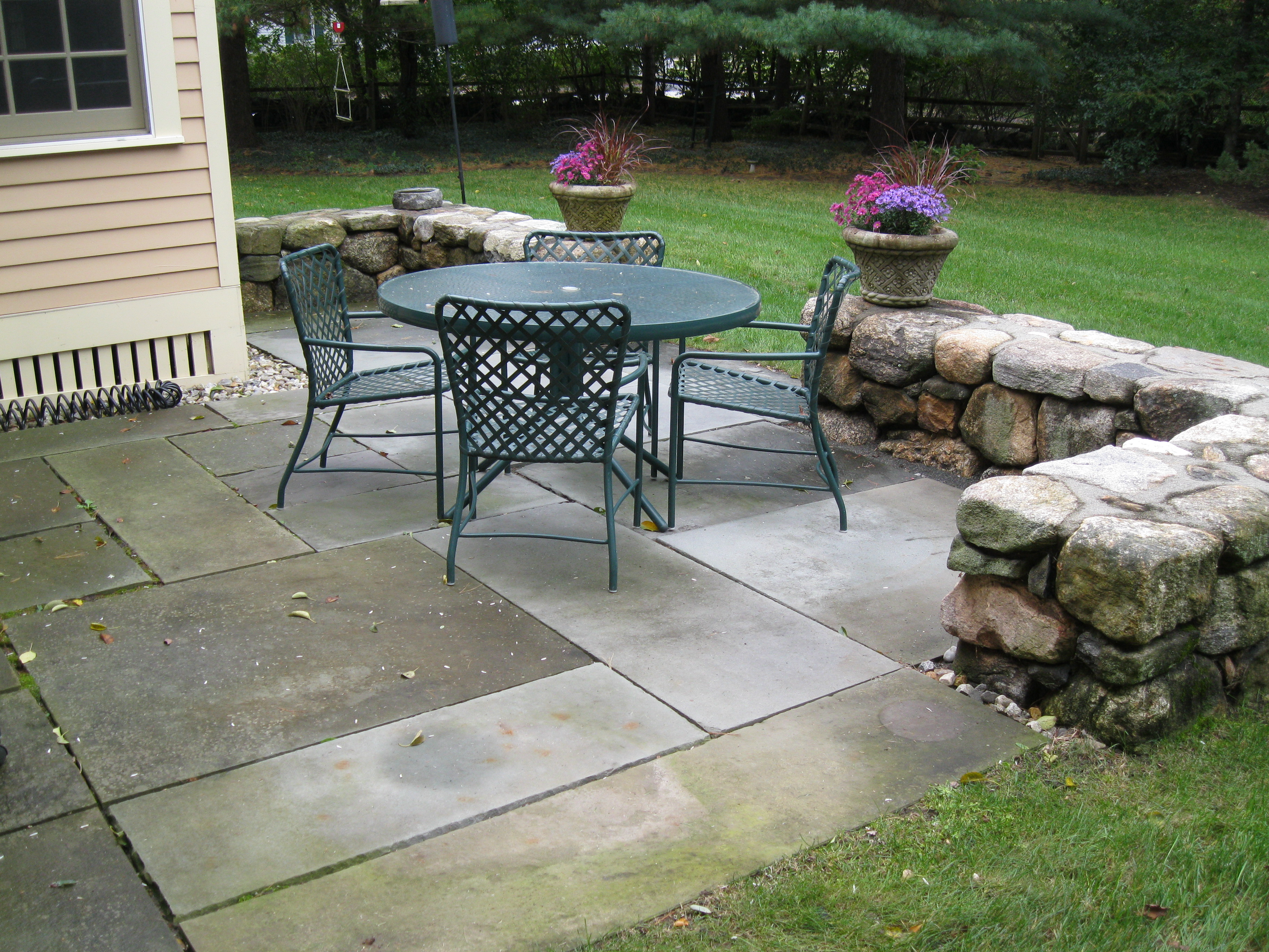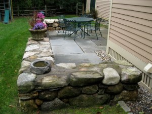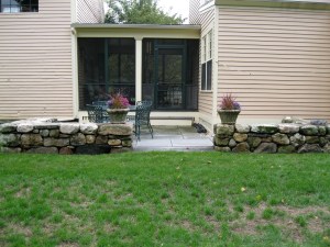 square back patio with sitting wall