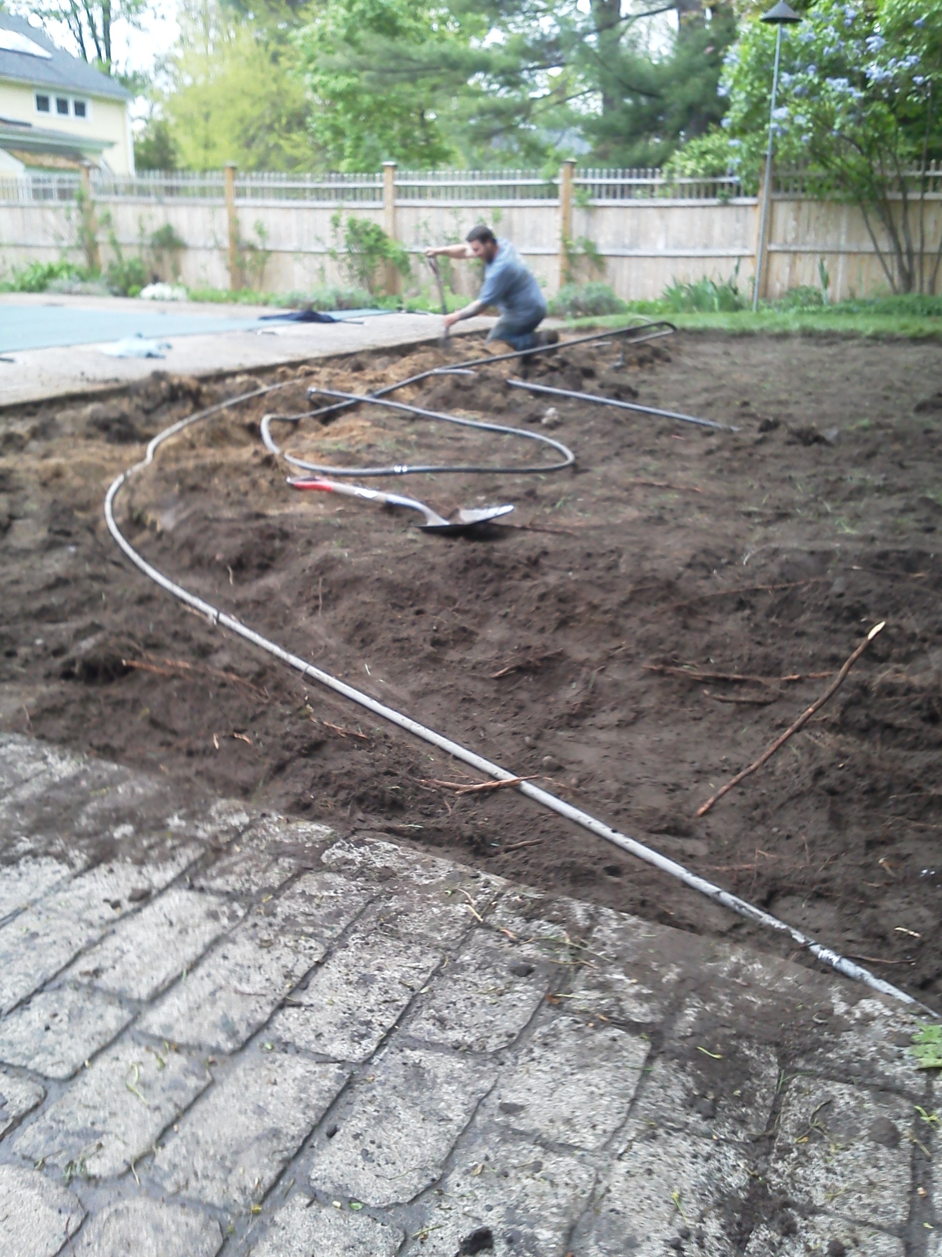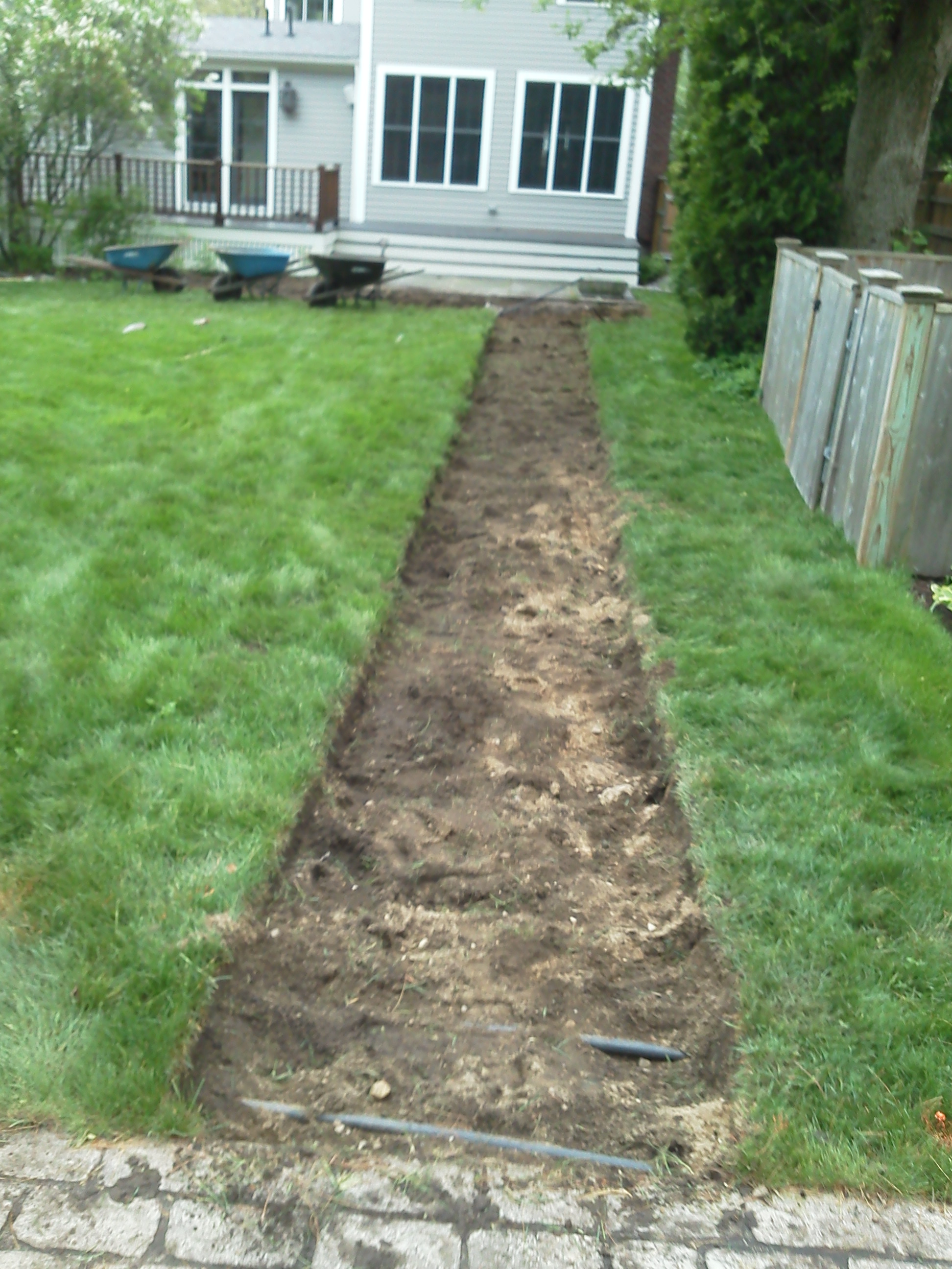 New patio and walk in a difficult spot behind house with a 4ft entrance.